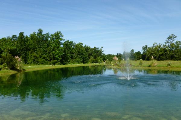 Pond stocked with bass, bluegill and koi.